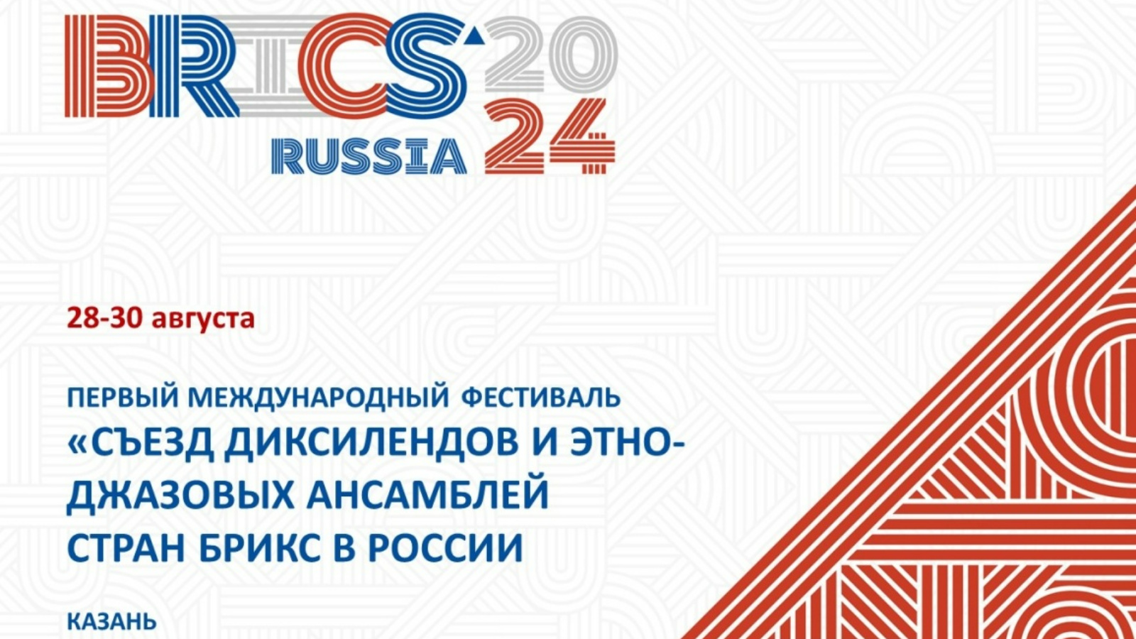 С 28 по 30 августа 2024 года в Казани пройдет первый Международный фестиваль «Съезд диксилендов и этно-джазовых ансамблей стран БРИКС в России». В нем примут участие российские и зарубежные диксиленды и этно-джазовые коллективы стран БРИКС, музыканты из других стран. Фестиваль предварит октябрьский саммит БРИКС, продемонстрирует роль джаза в объединении людей по всему миру, гостеприимство, сердечные качества россиян и непосредственно жителей мультикультурного Татарстана как принимающей саммит БРИКС стороны. Слоганы – «Джаз объединяет нас!», «Миру – джаз! Джазу – мир!» – определяют вдохновляющую миротворческую суть Фестиваля.