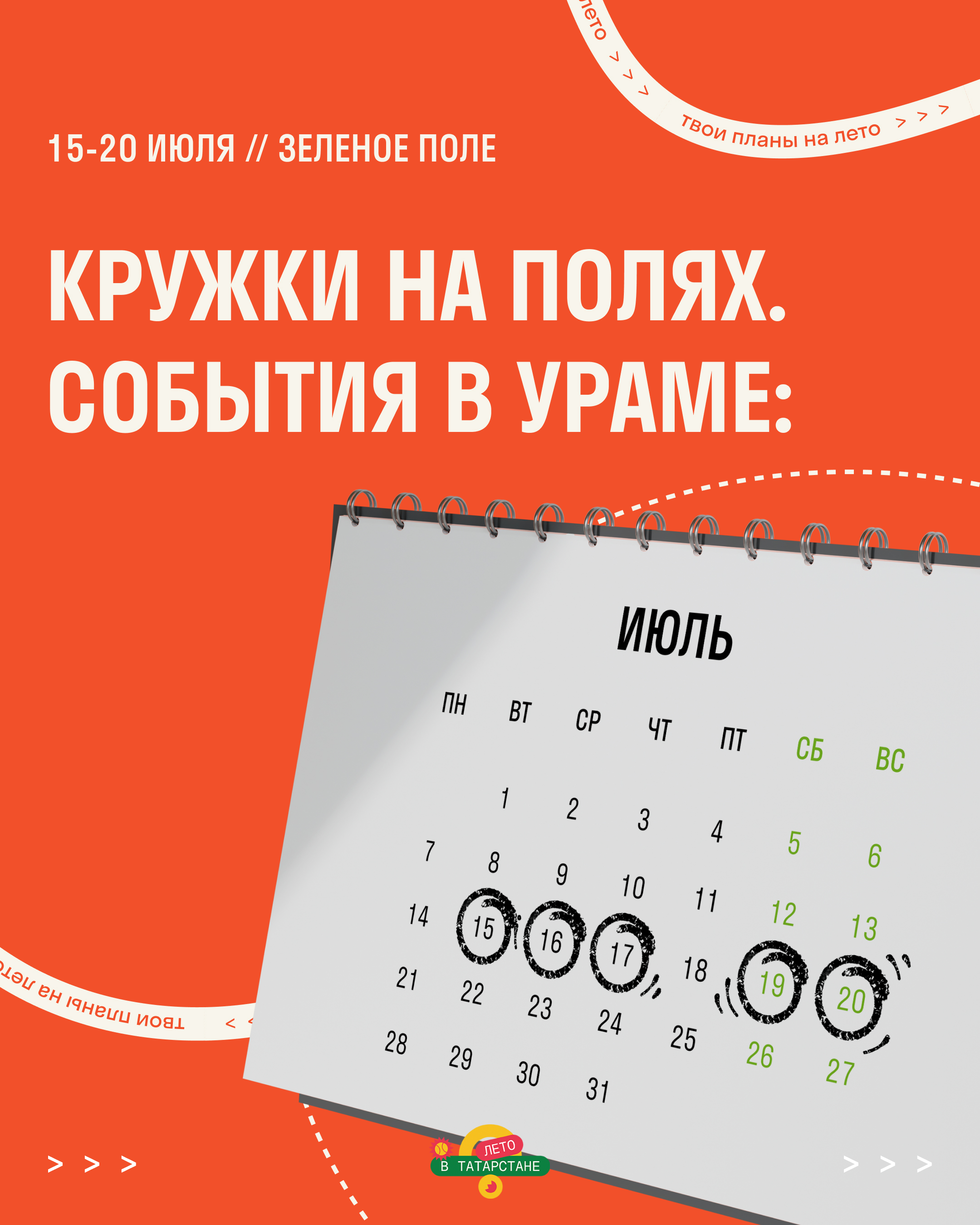 Все занятия бесплатные для посещения и проводятся в рамках программы «Лето в Татарстане» и соответствуют целям национального проекта «Молодежь и дети». Необходима предварительная регистрация на каждое событие: forms.yandex.ru/u/686f9827e010db531f98adef/