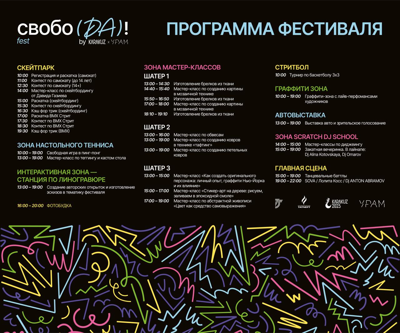 10:00-19:00 — граффити-зона с лайв-перфомансами художников