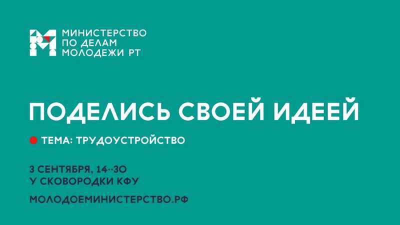 3 сентябрь көнне ТР яшьләр эшләре министры Дамир Фаттахов белән «14.30» форматындагы чираттагы очрашу уза. Биредә яшьләрне эш белән тәэмин итү мәсьәләсе каралачак.