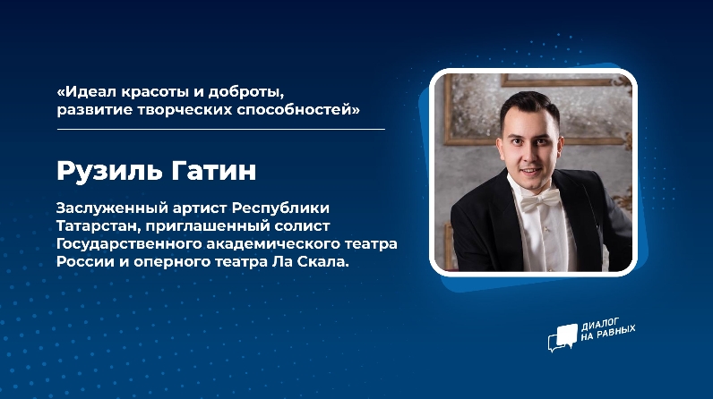 21 апрельдә 16: 00 сәгатьтә Татарстан яшьләре инстаграмының аккаунтында Рузил Гатин белән «диалог на равном» проекты кысаларында Туры эфир узачак. Очрашуның темасы: "матурлык һәм игелек идеалы. Иҗади сәләтләрне үстерү».