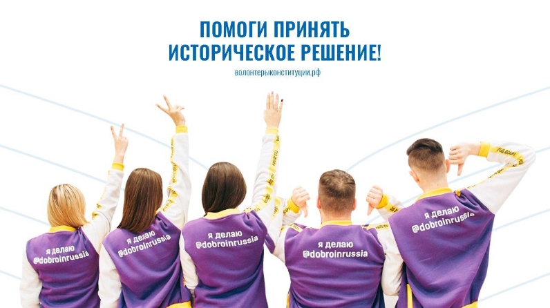 «Конституция волонтерлары» Бөтенроссия иҗтимагый корпусы активистлары 15 июньнән 1 июльгә кадәр, Төп законга тәкъдим ителгән төзәтмәләрнең асылы турында сөйләү өчен, Казан, Чаллы, Түбән Кама, Әлмәт һәм Яшел Үзән җәмәгать урыннарында мәгълүмат нокталарын җәелдерәчәк. Волонтерлар шулай ук төзәтмәләрнең асылын аңлатучы мәгълүмати материаллар таратачаклар.