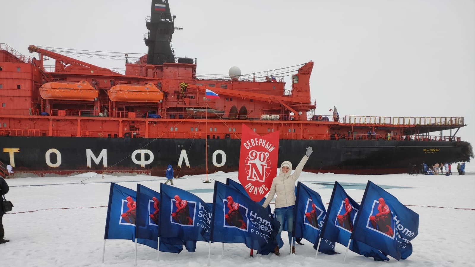 Катнашучылар Мурманск-Төньяк полюс маршруты буенча экспедициягә «Җиңүнең 50 еллыгы» атом бозваткычында юл тотты.