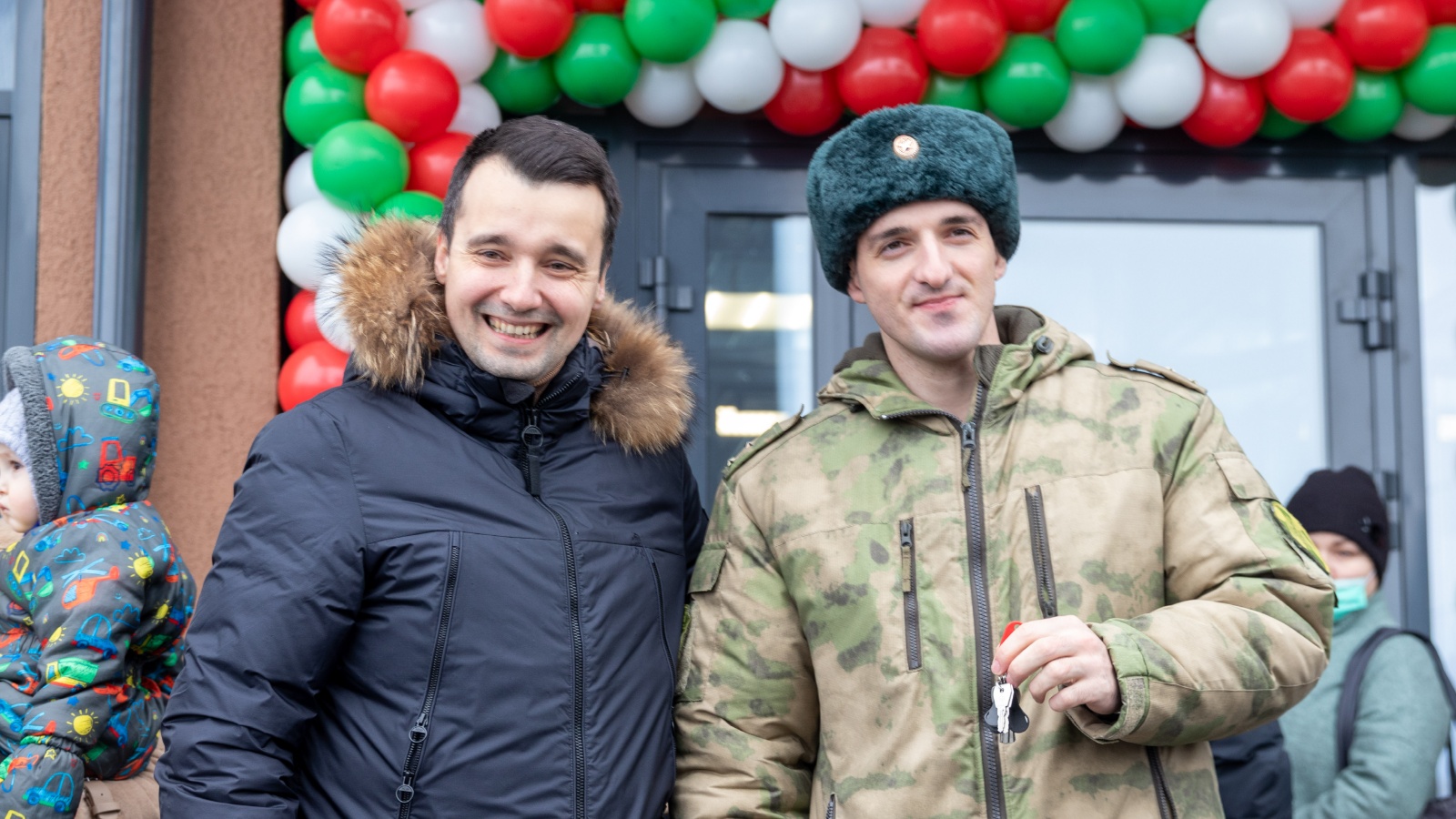 Бәхетле фатир ияләрен ТР Яшьләр эшләре министры Тимур Сөләйманов, ТР Президенты каршындагы Дәүләт торак фондының башкарма директоры урынбасары Булат Гилманов һәм Казанның Киров һәм Мәскәү районнары администрациясе башлыгы урынбасары Максим Воробьев котладылар.