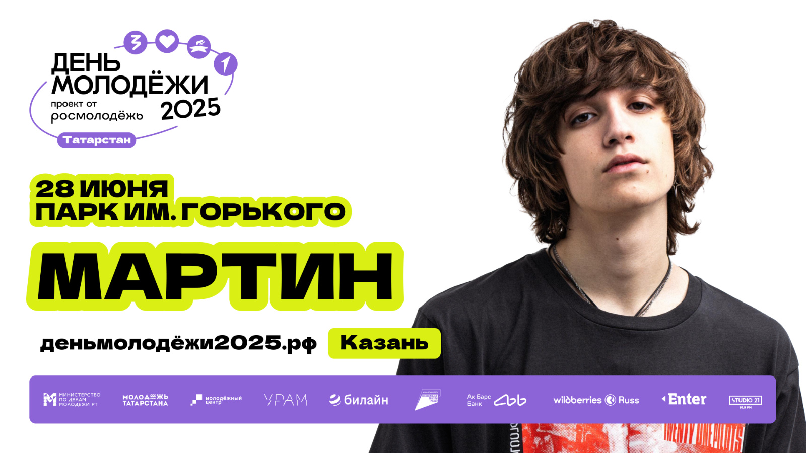 Мартин фестивальнең төп сәхнәсендә Горький исемендәге паркта урнашачак кичке музыкаль концерт кысаларында чыгыш ясаячак. Яшьләр көне «УРАМ» экстрим-паркында һәм Горький исемендәге паркта 28 июньдә «Бел, ярат, горурлан, арттыр» дип аталган гомуми концепция астында узачак. Кунакларны экстрим-ярышлардан һәм черлидинг буенча мастер-класслардан алып продюсерлар, психологлар һәм югары уку йортлары ректорлары белән очрашуларга кадәр тематик киңлекләр көтә. Талантларга ярдәм итүгә һәм карьера үсешенә аерым игътибар бирелә: эш бирүчеләр күргәзмәләре, панель дискуссияләр һәм арт-проектлар. Фестиваль мәйданчыкларында яшьләрнең бирелгән мөмкинлекләрдән файдаланып кына калмыйча, «Яшьләр һәм балалар» милли проектында гамәлгә ашырылган һәм «Татарстанда җәй» программасына кертелгән уникаль ярдәм кораллары аша үз потенциалларын гамәлгә ашырып, бөтен җәмгыять файдасына хезмәт итүләре күрсәтеләчәк.