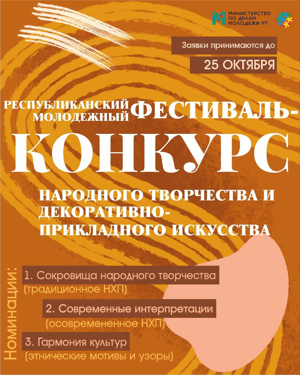 Татарстан халыкларының Яшьләр Ассамблеясе Татарстан Республикасы Яшьләр эшләре министрлыгы ярдәмендә Республика яшьләр фестивален – халык иҗаты һәм декоратив-гамәли сәнгать конкурсын уздыра. Приз фонды – 100 000 сум.